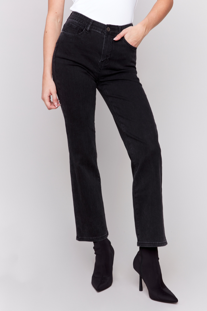 The Straight Leg Elastic Waistband Jean in Charcoal Black combines effortless style with all-day comfort. Its stretchy waistband adapts to your shape, ensuring a perfect fit without sacrificing ease of movement. Ideal for any occasion, these jeans deliver a sleek, modern look while keeping you comfortable from morning to night. Elevate your wardrobe with this versatile essential.