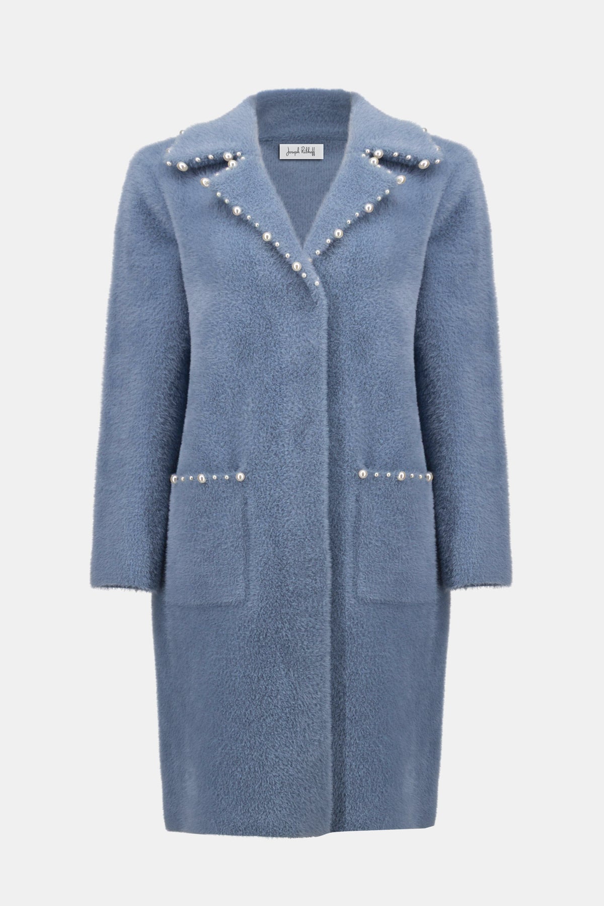 Feather Yarn Sweater Coat with Pearl Trim 261997