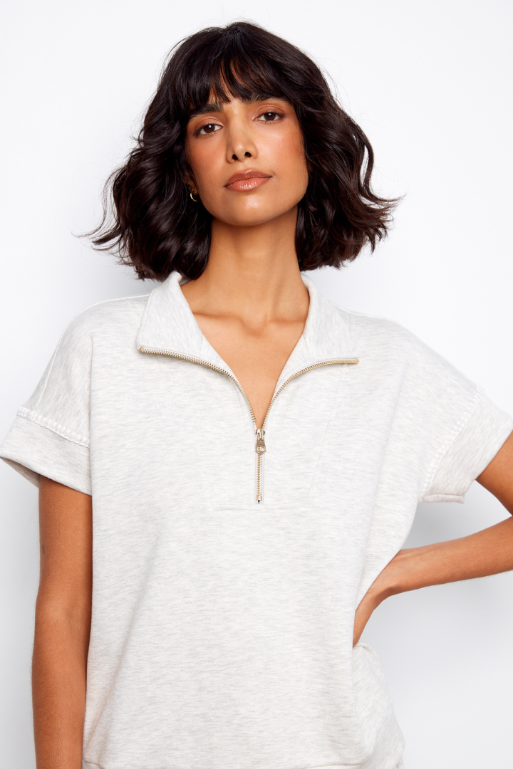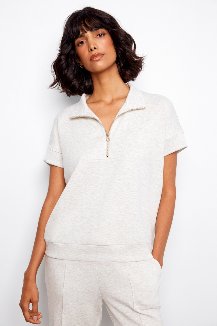 Regular price $89.99This half-zip scuba top combines comfort with understated elegance. The short sleeves offer breathable versatility, while the convenient half-zip design lets you adjust your coverage on the fly. Perfect for cottage getaways or weekend travels, its soft, luxurious fabric keeps you looking polished whether you're by the water or exploring new destinations. A wardrobe essential that works as hard as you do.