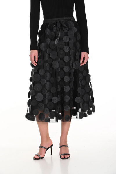 Black Sheer Pleated A-Line Skirt with Satin Detail Style 234068