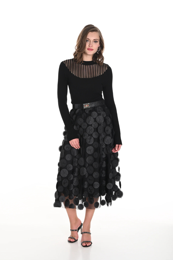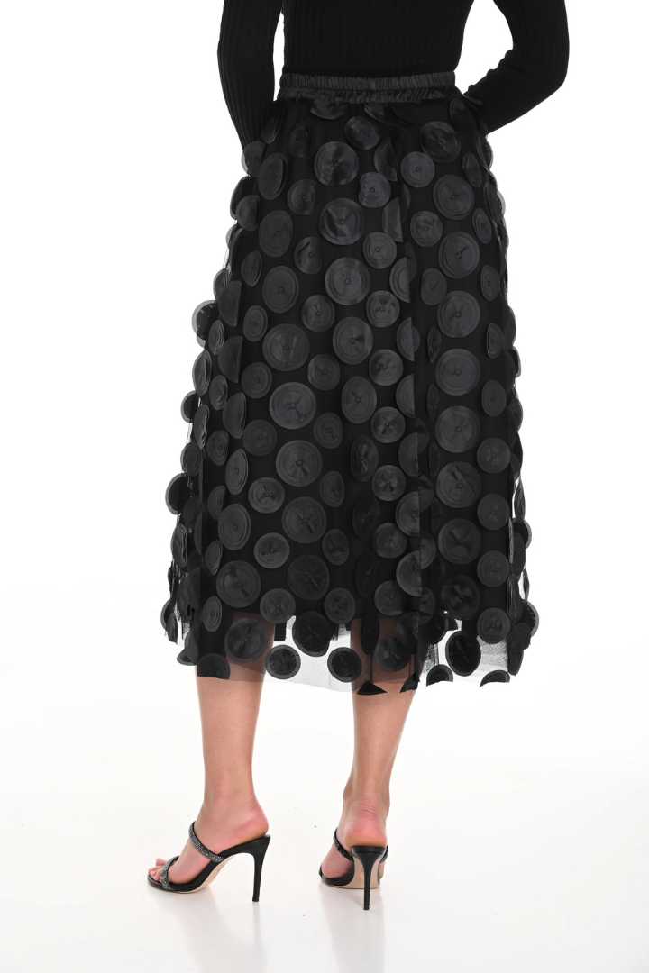 Regular price $260.26Experience effortless elegance with the Frank Lyman midi A-line skirt, showcasing a playful polka dot design beneath a sheer overlay dotted with textured circles. Ideal for casual days or adding a delicate flair to your look, its elastic waistband provides all-day comfort. This adaptable skirt blends style and ease seamlessly, becoming an essential piece in your collection.
