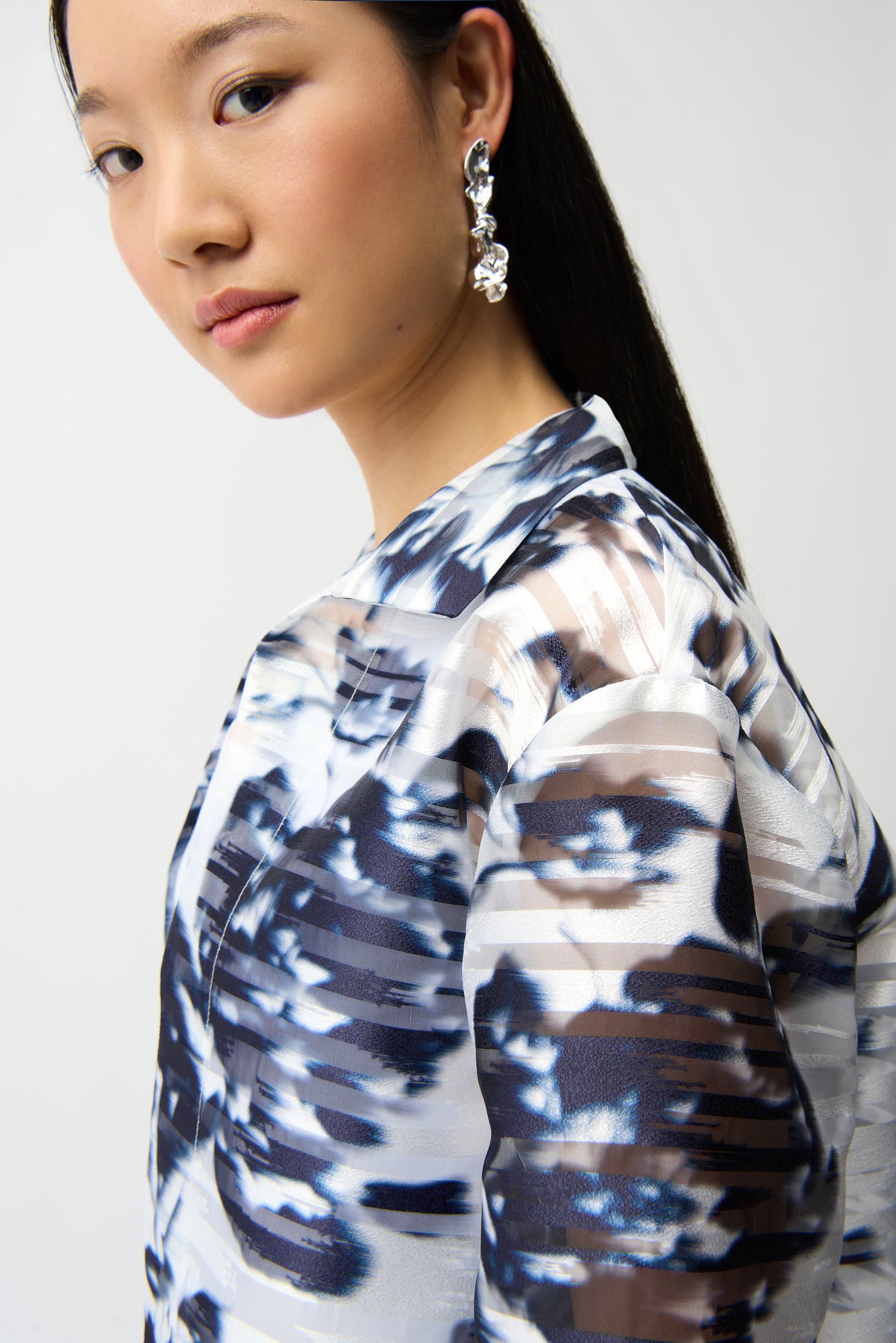 Regular price $238.11Elevate your everyday style with this Joseph Ribkoff collared jacket, featuring delicate floral and abstract patterns in luxurious organza. The structured silhouette with button closure and long sleeves offers a polished, feminine aesthetic perfect for layering over dresses or pairing with tailored trousers. Hip-length cut provides comfortable regular fit while maintaining an effortlessly sophisticated appearance. Seamlessly transitions from casual outings to semi-formal events, making it an essential wardrobe staple for versatile, elegant dressing.