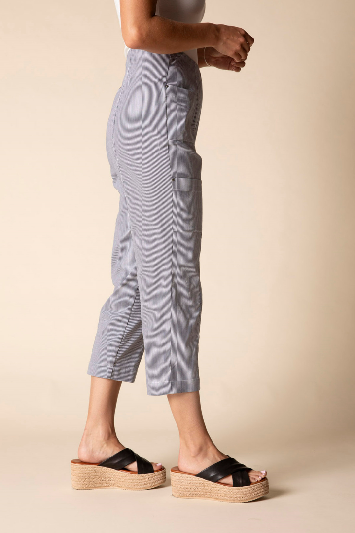 Regular price $126.06Elevate your wardrobe with the Seaside Crop Pant in Navy, crafted from lovely fabric that moves with you. Vertical stripes create an elongating effect that flatters your silhouette while maintaining effortless comfort. Perfect for those who refuse to compromise between style and ease, these crop pants transition seamlessly from casual outings to weekend adventures. A versatile essential that works as hard as you do.
