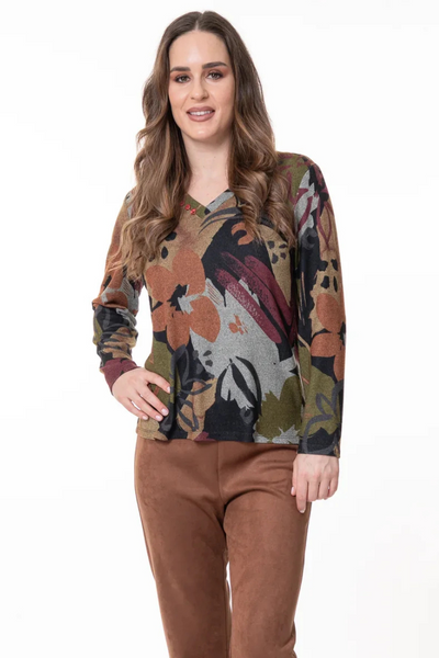 Feather Yarn Abstract Print Sweater Coat Style 254975
