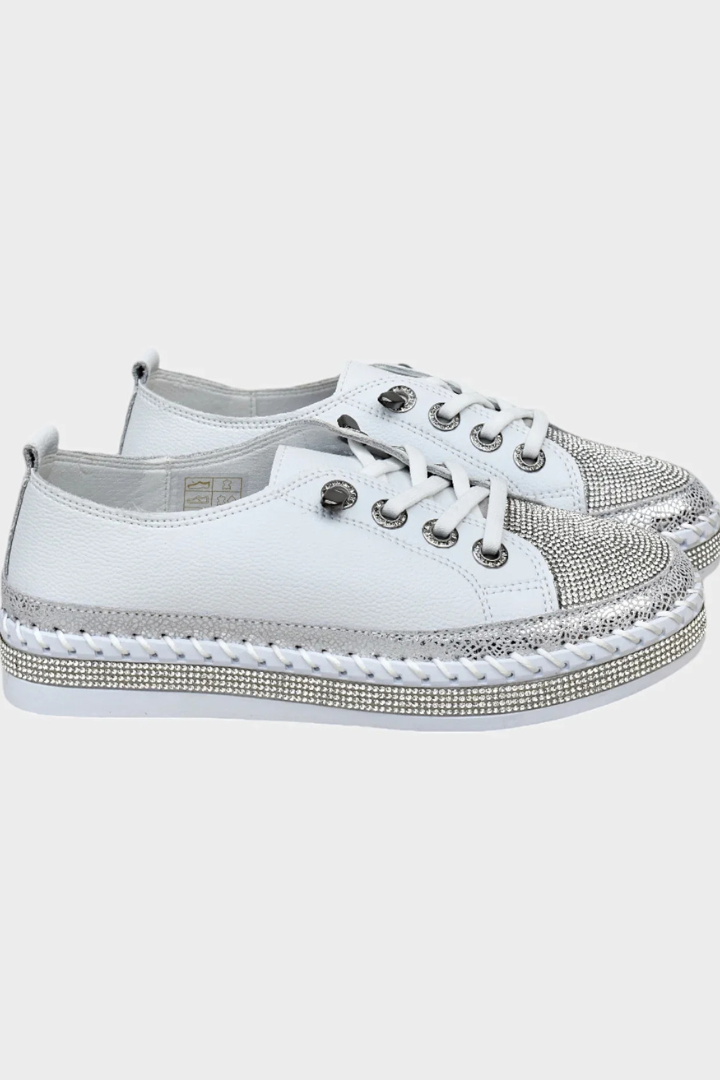 Step out in style with the Tie Up Sneaker in white, designed to blend fashion with exceptional comfort. Featuring elegant embellishments, this sneaker adds a touch of sophistication to your casual look. Its cushioned sole ensures all-day comfort, making it perfect for busy days or relaxed outings. Elevate your footwear collection with a sneaker that feels as good as it looks.