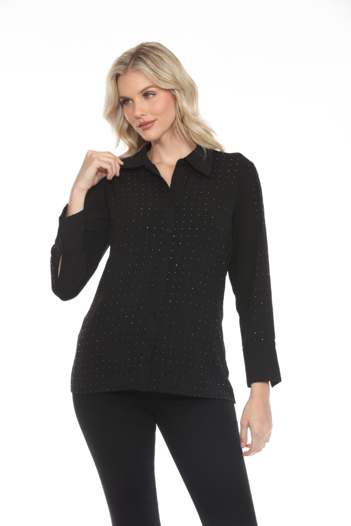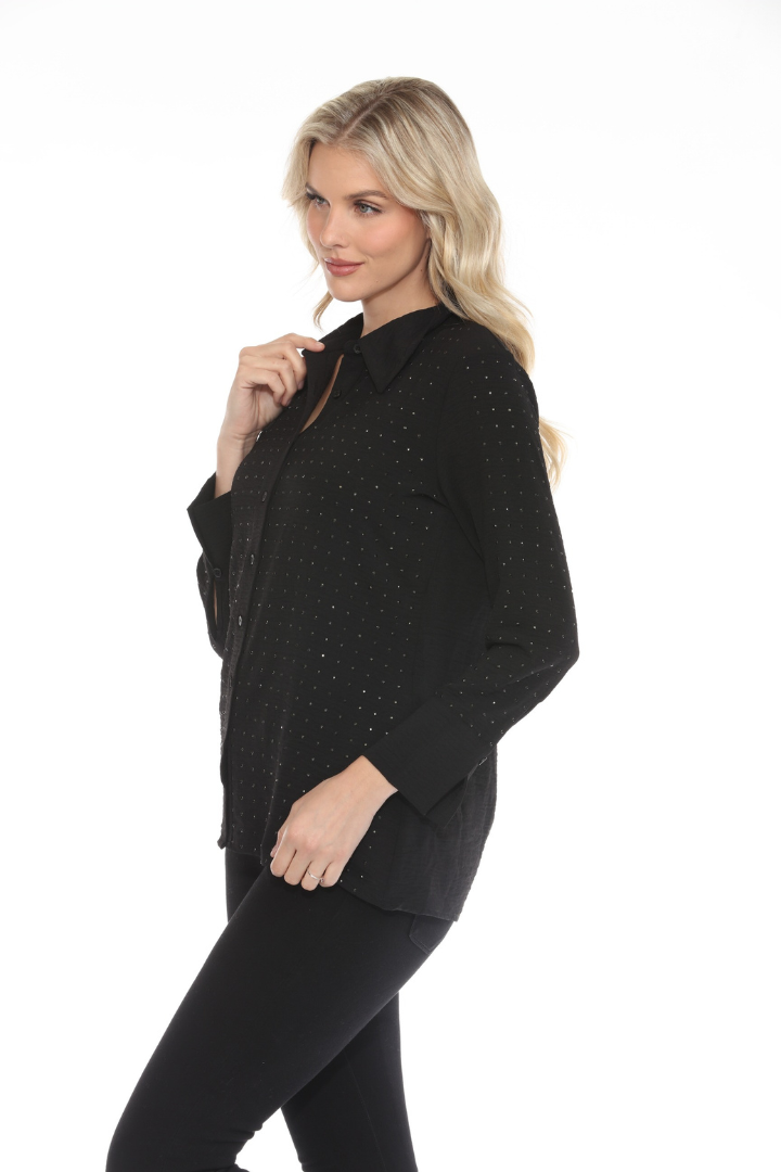 Regular price $121.82This sheer embellished blouse in black offers effortless elegance as part of a chic two-piece set. Easy to wear and styled for versatility, it seamlessly transitions from dinner outings to weddings. Its delicate detailing adds just the right amount of sparkle, making it a standout choice for special occasions.