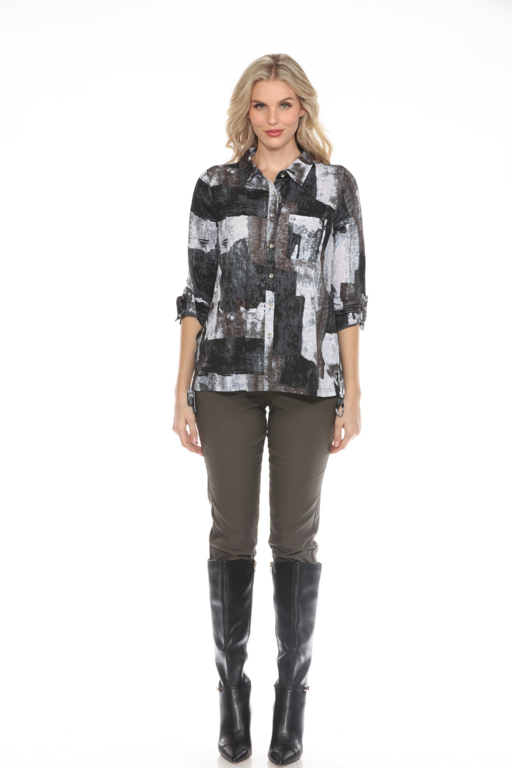 This Side Tie Printed Blouse in grey is travel-friendly and effortlessly versatile, perfect for any occasion. Its easy-to-wear design features a round hem created when you pull the strings, adding a flattering silhouette to your look. Ideal for layering or wearing on its own, this blouse combines comfort with style wherever your day takes you.
