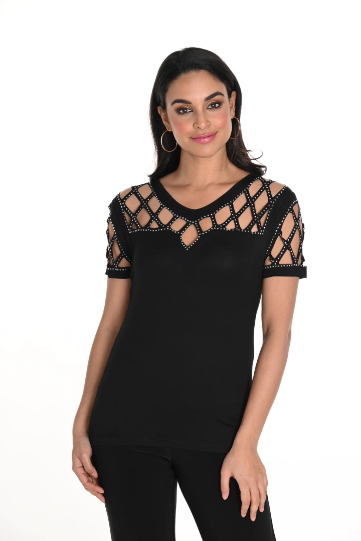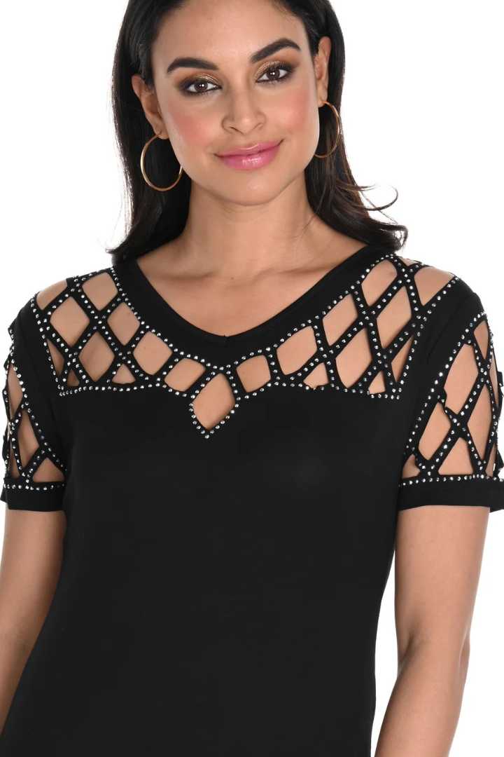 Embellished Cutout Neck Top Style 243465U