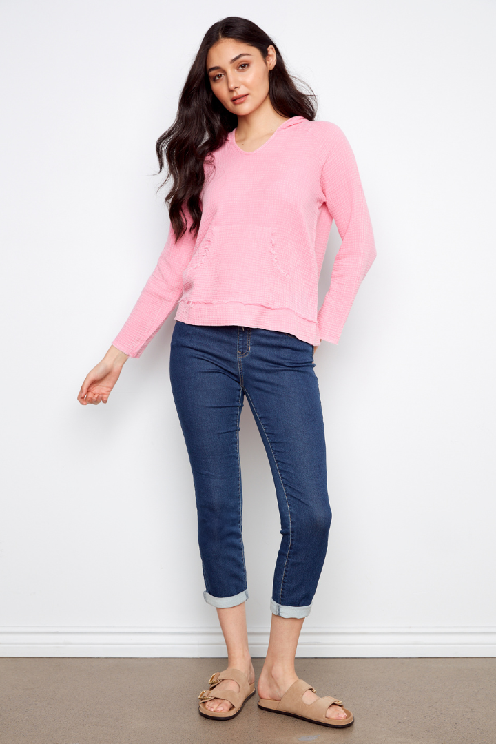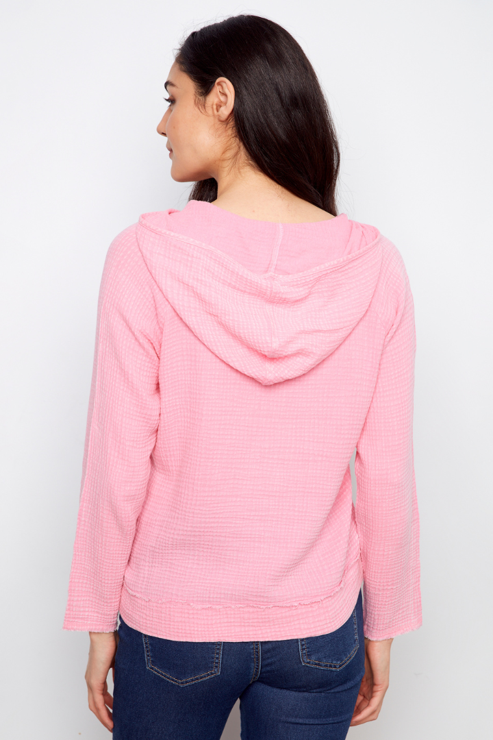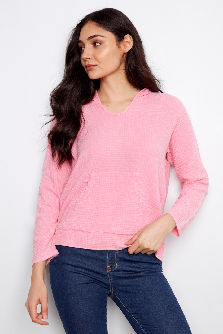 Wrap yourself in comfort with this beloved waffle cotton hooded top, crafted from breathable fabric that feels as good as it looks. The gorgeous candy hue adds a pop of color to any wardrobe, making it perfect for layering or wearing solo. Soft, textured weave and a cozy hood create the ideal piece for casual days when style meets comfort. A customer favorite for good reason.