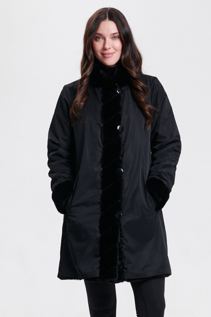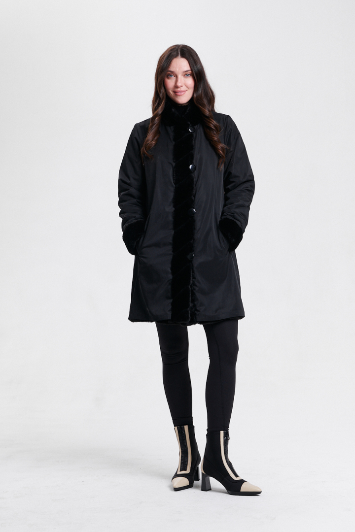 Reversible Faux Fur Coat - Black
