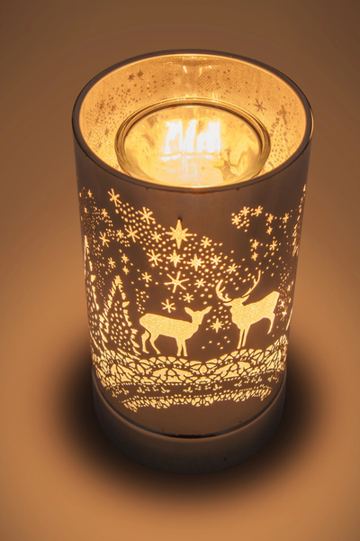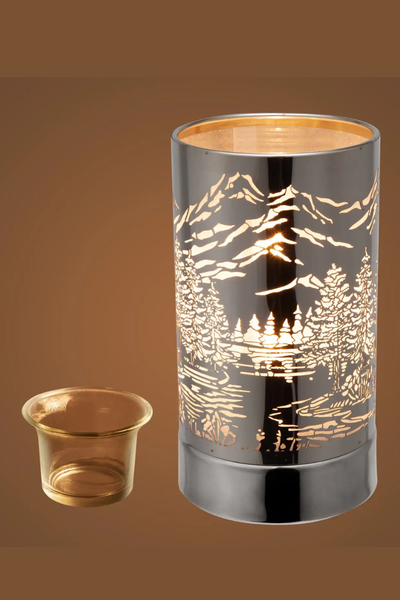 7" Touch Lamp/Oil Burner/Wax Warmer - Silver Mountain Trees