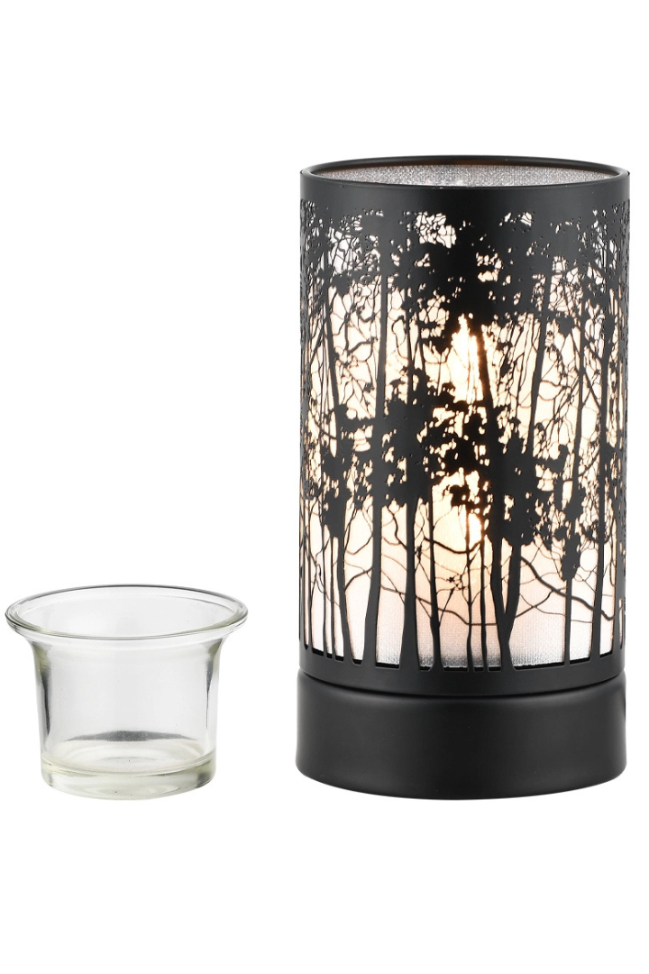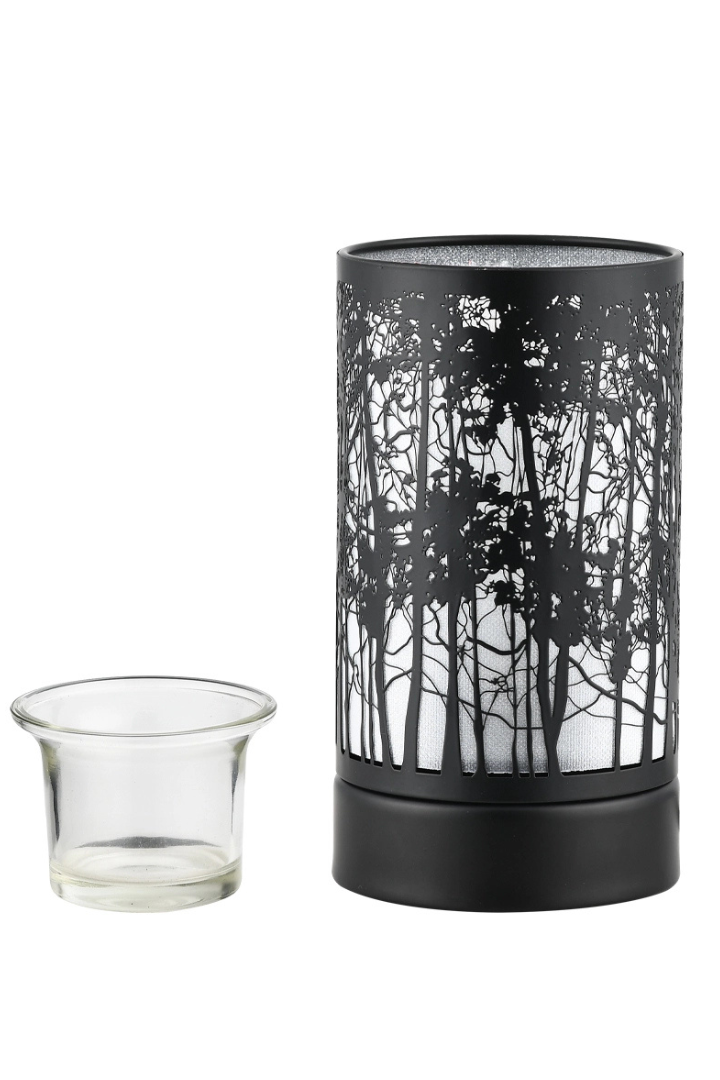 7" Touch Lamp/Oil Burner/Wax Warmer - Black Morning Trees