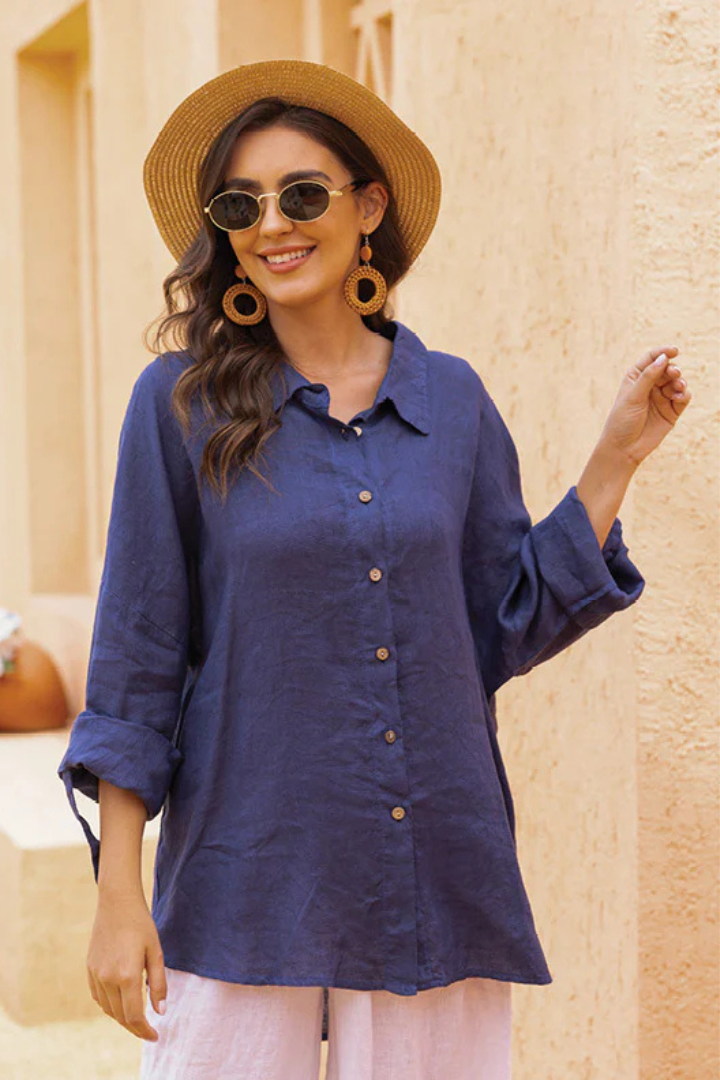 Regular price £57.90Effortless elegance meets everyday comfort in this linen blouse. The hi-low hemline creates a flattering silhouette that skims the body beautifully, while the back ring detail adds a touch of understated sophistication. Crafted from breathable linen, it's the perfect piece for transitioning from day to night—slip it on and go. Whether dressed up with tailored trousers or paired with your favorite jeans, this versatile blouse delivers timeless style without the fuss.