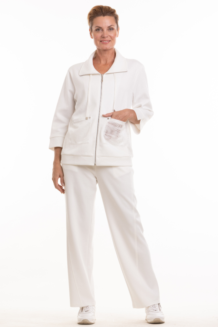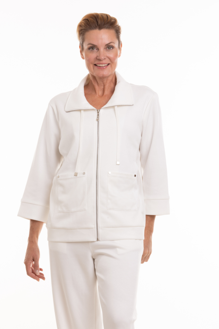 Zip Front Jacket with Pockets - White