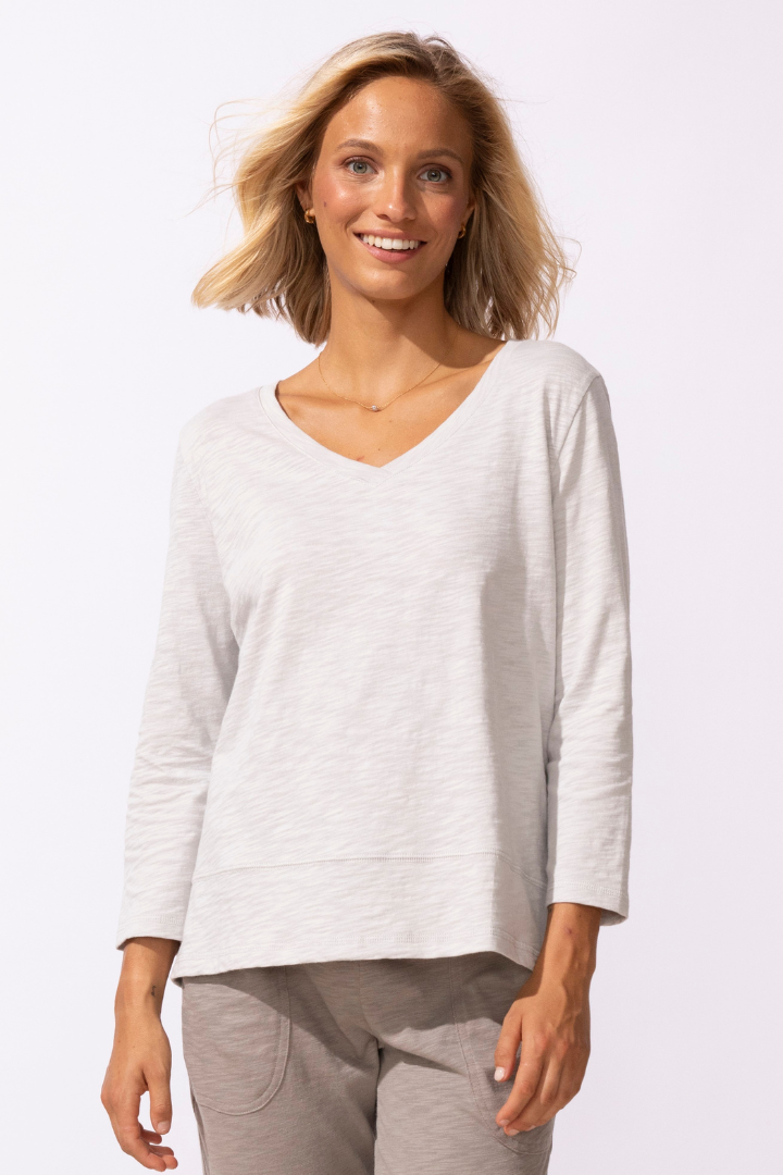 V Neckline Cotton Tee - Dune