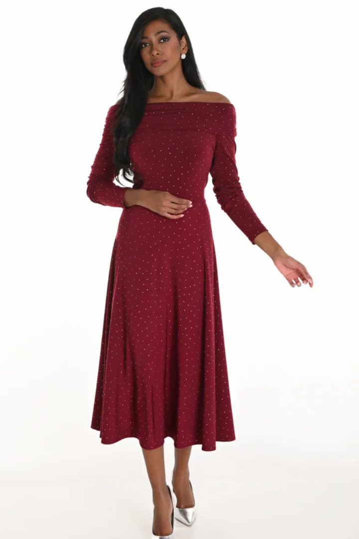 Regular price $235.97Turn heads in this stunning off-the-shoulder embellished dress that combines timeless elegance with modern allure. The body-hugging silhouette flatters your curves while the intricate embellishments add a touch of glamour to any occasion. Whether you're attending a special event or elevating your evening look, this dress delivers sophistication and confidence. Choose from two classic colors to find your perfect match and make a lasting impression.