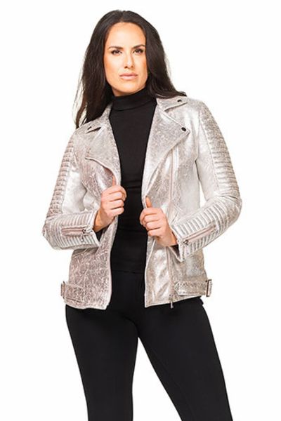 Foiled Faux Suede Fitted Jacket with Rhinestones 254904