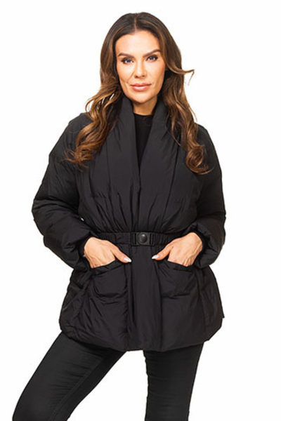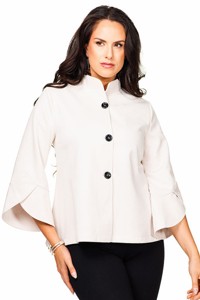 Faux Leather Trimmed Poncho Sleeve Jacket Style 253998