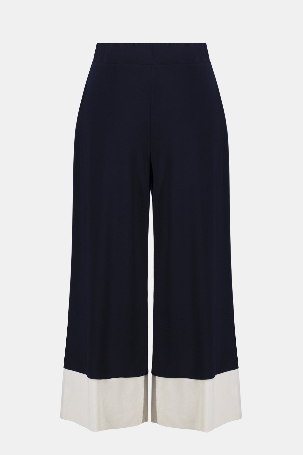 Elevate your everyday wardrobe with this sophisticated two-piece set that effortlessly blends comfort and style. The boxy top showcases a timeless scoop neckline and short sleeves, enhanced by striking contrast stretch poplin color blocks that add visual interest. Pair it with the matching culotte pants, featuring the same elegant poplin accents at the cuffs and a discreet covered elastic waistband for all-day ease. Crafted from luxurious silky knit fabric, this collection proves that looking polished and feeling comfortable aren't mutually exclusive—they're simply the perfect match.