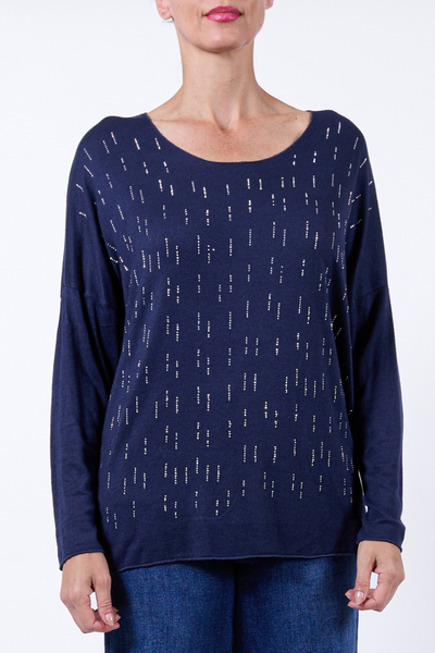 Embellished Round Neck Knit Top
