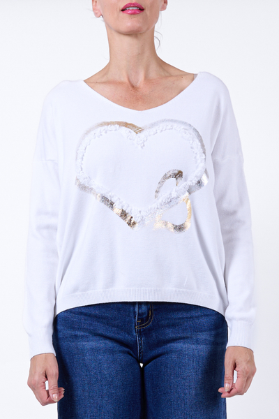 Foil Brushstroke Heart Top - Snow