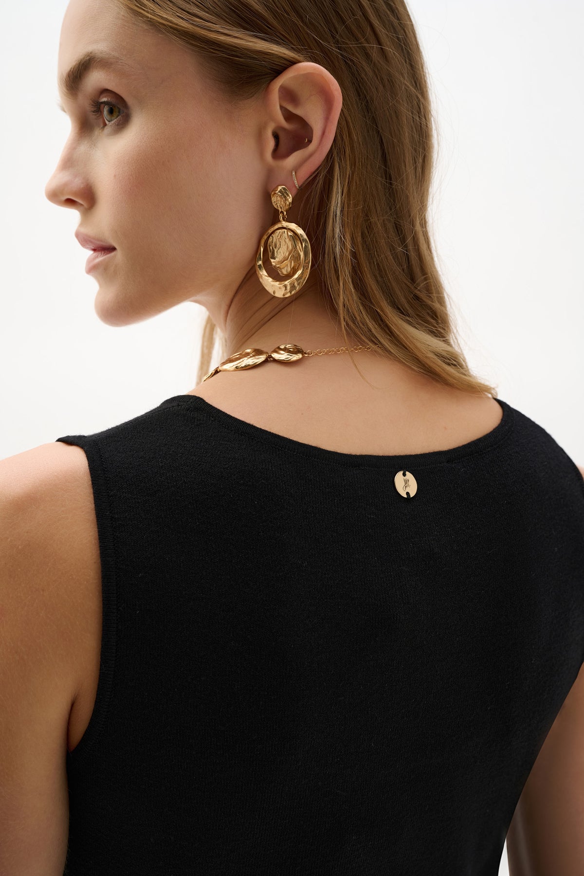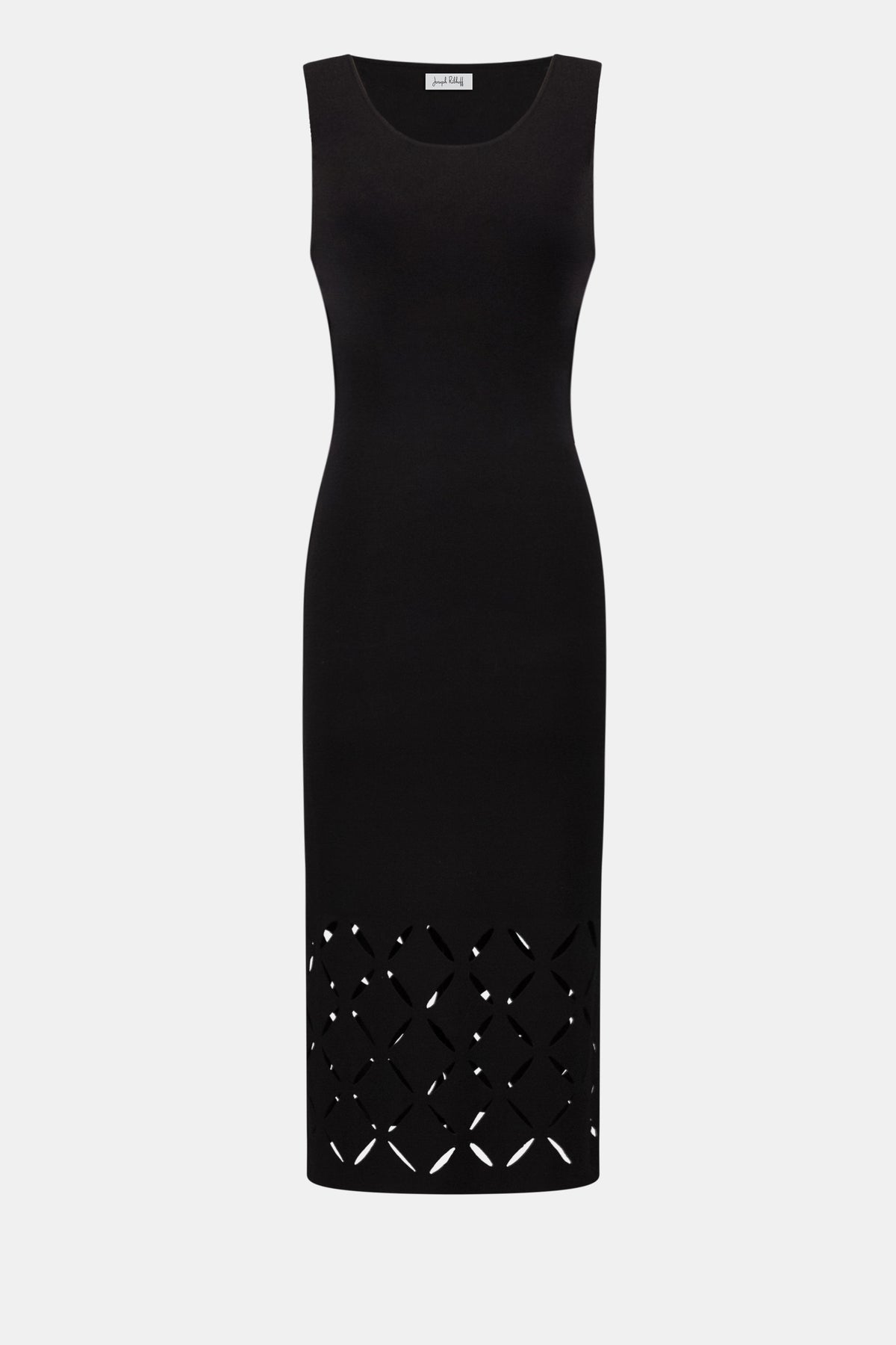 Elevate your wardrobe with this Joseph Ribkoff sheath midi dress, where contemporary design meets timeless elegance. The striking square neckline and sleeveless silhouette create a modern foundation, while strategically placed cut-outs and jeweled accents deliver sophisticated visual interest. Perfect for warm-weather events and casual gatherings, this piece combines flattering tailoring with eye-catching details that showcase your personal style. A versatile essential that transitions effortlessly from day to evening, this dress proves that understated femininity and bold design elements can work beautifully together.